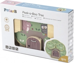Dřevěná hra Peek‑a‑Boo strom od POLARB je navržena pro hravé objevování. Děti posouvají a otáčejí dílky, klepou na dvířka a nacházejí roztomilé obyvatele stromu – sovičku, veverku či ježka. Tato interaktivní hra přirozeně rozvíjí koordinaci oko‑ruka a podporuje zvídavost.