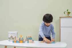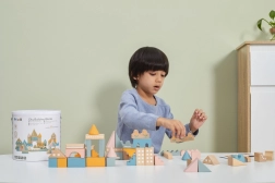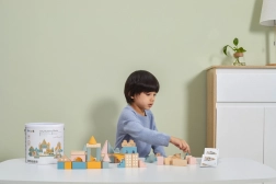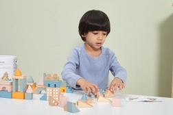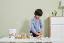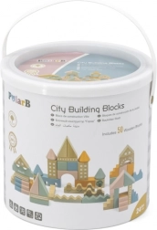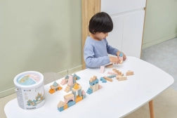 Tato kvalitní dřevěná stavebnice v kyblíku nabízí 50 pečlivě zpracovaných dílků v příjemných pastelových barvách. Děti si s ní postaví domečky, věžičky i celé město a zároveň rozvíjejí koordinační schopnosti, logické myšlení a kreativitu.