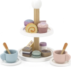 Elegantní dvoupatrový stojan pojme všechny dortíky a vytváří realistickou scénu pro čajový dýchánek. Děti si hravě procvičí jemnou motoriku při aranžování.
