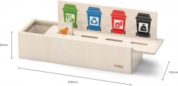 Tato vzdělávací hračka VIGA je ideální pro děti, které se učí základům třídění odpadu. Dodává se s dřevěnou krabicí, která má otvory pro vhazování destiček a tabulkou s různými odpadkovými koši. Zahrnuje také 50 dřevěných destiček s obrázky odpadu a barvami odpovídajícími recyklačním kategoriím.