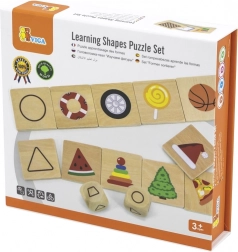 Dřevěné vzdělávací puzzle od VIGA je hračka zaměřená na rozvoj kognitivních a motorických schopností dětí. Toto kvalitní puzzle je vyrobeno z přírodního dřeva a je malováno netoxickými barvami, což zajišťuje bezpečnost pro vaše dítě. Sada obsahuje různé tvary, které děti přiřazují k denním objektům, jako jsou květináč (trapezoid) nebo kousek pizzy (trojúhelník).