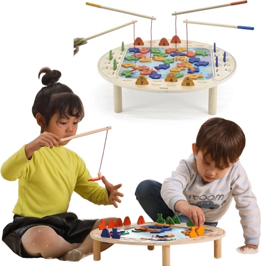 Dřevěná hra Lovení rybiček nabízí možnost zábavného a vzdělávacího hraní. Tento atraktivní herní stůl obsahuje:
