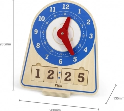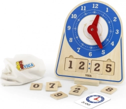 Dřevěné hodiny pro výuku času od značky Viga jsou výjimečná vzdělávací pomůcka, která kombinuje zábavu a učení. Tato samostatně stojící hračka obsahuje 12 instruktážních karet, které dětem pomohou naučit se hodiny. Dítě může samostatně nastavit libovolný čas pomocí karet nebo se naučit následovat hodiny. Ekologická taška umožňuje snadné ukládání příslušenství.