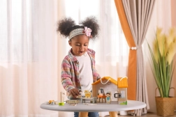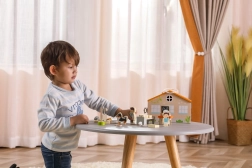 Hračka je pohádkově zpracována z bukového dřeva a natřena netoxickými barvami. Kovový zámek zabraňuje ztrátě figurek, což zajišťuje bezpečnost a organizaci při hraní.