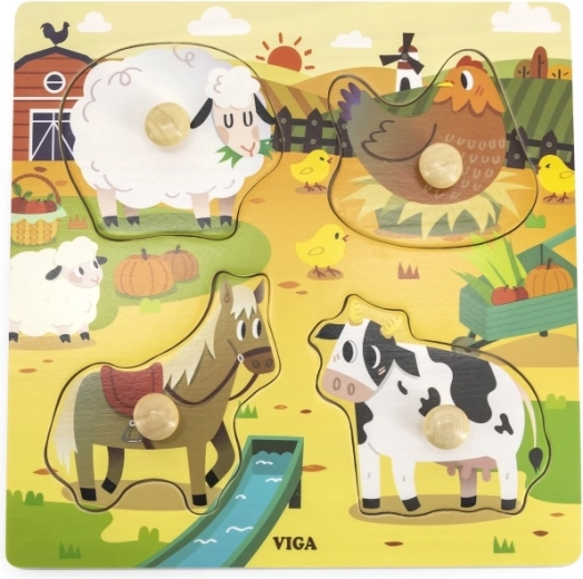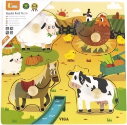 Tato dřevěná vkládačka je perfektní volbou pro rodiče, kteří chtějí podpořit rozvoj motorických dovedností svého dítěte. Nabízí krásné ilustrace farmařských zvířat – ovce, slepičky, koně a krávy. Každý dílek je vybaven praktickým knoflíkem, který umožňuje snadné uchopení a manipulaci pro menší ručičky. Puzzle je navrženo s ohledem na bezpečnost a trvanlivost, takže je ideální pro děti od 12 měsíců.