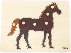 Montessori vkládačka s realistickým motivem koně vede děti k samostatnému objevování a soustředění. Pomocí praktických úchytů snadno uchopí jednotlivé dílky, učí se rozpoznávat tvary a trénují přesnost pohybů. Díky kontrastu přírodního dřeva a hnědého koníka jsou obrysy jasně čitelné a lákají ke hře.