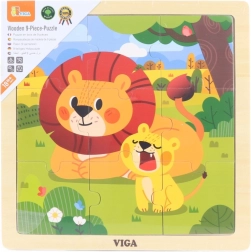 Roztomilé dřevěné puzzle s motivem lvů potěší malé stavitele od 18 měsíců. Nabízí 9 velkých dílků vhodných pro dětské ručičky, pevnou dřevěnou desku a rozměr 22 × 22 cm pro pohodlné hraní a učení.