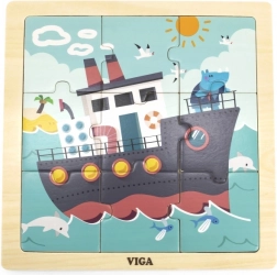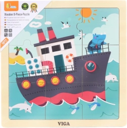 Dřevěné puzzle VIGA s motivem lodi nabízí 9 snadno uchopitelných dílků na pevné dřevěné desce – ideální pro nejmenší. Díky bezpečným netoxickým barvám, hladkým hranám a odolnému dřevěnému provedení je to skvělá volba pro domácnost i školku. Děti si užijí radost z objevování a procvičí jemnou motoriku, logické myšlení i poznávací dovednosti.