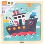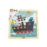 Výrobek je vyroben z kvalitního dřeva, má hladké, zaoblené hrany a je pomalován netoxickými a dětem bezpečnými barvami. Po vložení všech dílků vznikne kompletní obrázek lodi – ideální pro první úspěchy malých stavitelů.