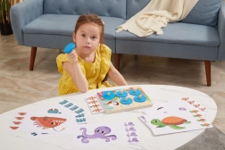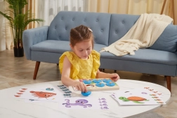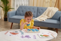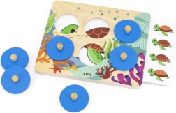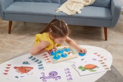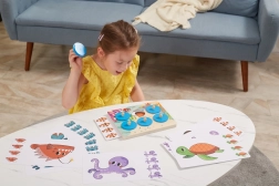 Objevujte tajemství moře s dřevěnou vzdělávací hrou, která děti baví a zároveň rozvíjí. Vkládáním tematických karet do dřevěné desky a postupným odkrýváním kulatých žetonů s úchyty děti trénují koncentraci, paměť i vizuální rozlišování detailů. Hra je ideální pro samostatnou i rodinnou zábavu.