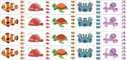 Součástí je 10 karet s oboustranným potiskem – dohromady 20 herních vzorů s mořskými zvířaty a dalšími tématy.