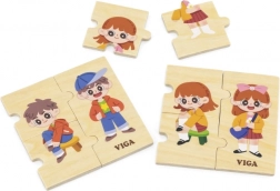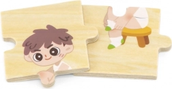 Tato kvalitní dřevěná vzdělávací hračka učí děti správnému postupu oblékání formou skládání navazujících dílků s obrázky chlapce a dívky. Každý dílek má jedinečný motiv a přesně do sebe zapadá, takže si děti při hře procvičí vnímání souvislostí i trpělivost.
