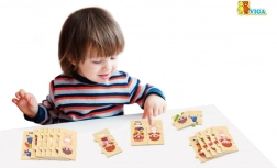 Sada podporuje raný rozvoj smyslů a jemné motoriky. Barevné ilustrace motivují k opakovanému hraní.