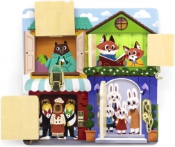 Tato kvalitní dřevěná tabule inspirovaná metodou Montessori nabízí čtyři dvířka se skutečnými zámky a západkami, které dítě postupně odemyká a zavírá. Každé otevření odhalí veselá zvířátka, čímž podněcuje zvědavost a soustředění.