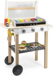 Dětský gril VIGA přináší autentický zážitek z grilování v bezpečné, kvalitní a stabilní dřevěné konstrukci. Děti si mohou připravit špízy, burgery, hotdogy či sendviče a obsluhovat „hosty“ jako na skutečné zahradní párty. Otočná tlačítka s klikacím efektem, odnímatelná poklice a výsuvný rošt podporují realistickou hru a rozvoj zručnosti.