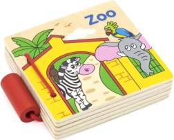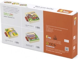 Tato roztomilá dřevěná knížka s motivem Zoo přináší dětem první seznámení se zvířátky formou hry. Silné dřevěné stránky s jasnými ilustracemi podporují vizuální vnímání, jemnou motoriku a soustředění. Díky kompaktnímu formátu je ideální na cesty i do dětského pokojíčku.