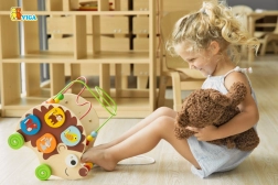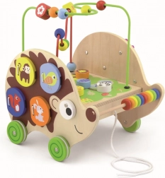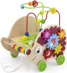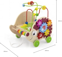 Tato multifunkční tahačka v podobě ježka od VIGA spojuje oblíbené vzdělávací prvky do jednoho chytrého hracího centra. Děti baví posouvat korálky v kuličkovém labyrintu, točit ozubenými koly, procházet labyrint se zvířátky, zkoušet počítání a objevovat naučné otočné prvky. Pestrobarevné provedení přirozeně láká k objevování a podporuje soustředění.