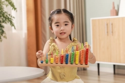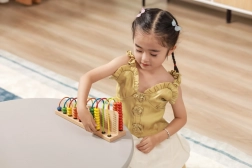 Tato kompaktní dřevěná pomůcka na počítání přináší dětem radost z objevování čísel a jednoduchých matematických operací. Na dřevěné destičce jsou uvedeny příklady a dítě přiřazuje správný počet korálků na kovových obloucích. Díky intuitivnímu principu se děti přirozeně učí rozpoznávat čísla, počítat a chápat vztah mezi příkladem a výsledkem.