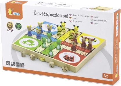 Vdechněte klasické hře nový život s dřevěnou verzí od značky VIGA. Barevné figurky zvířátek, čtyři kostky a promyšlené provedení z masivního dřeva dělají z této hry perfektní volbu pro společné chvíle doma i na cestách. Uzavíratelný box s deskou na víku udrží pořádek a usnadní přenášení.