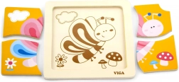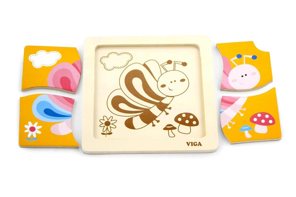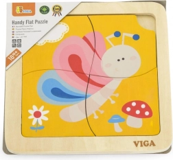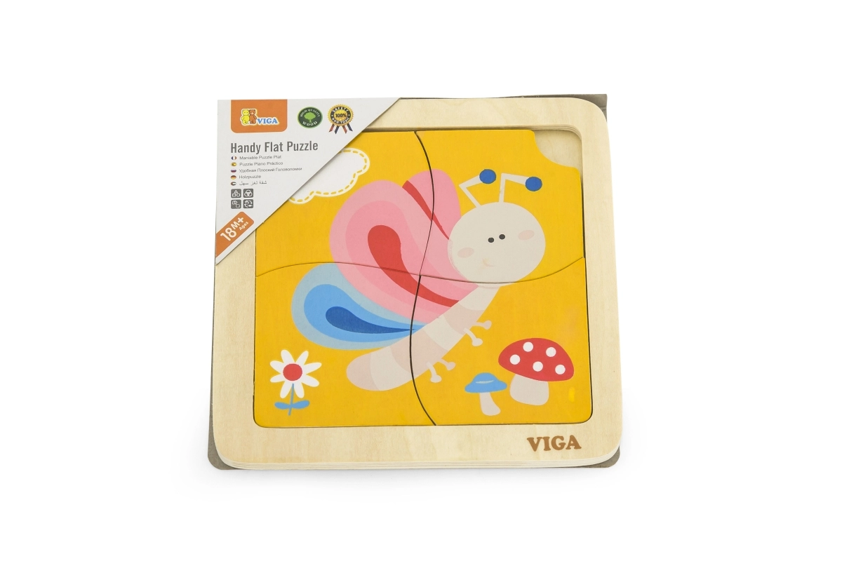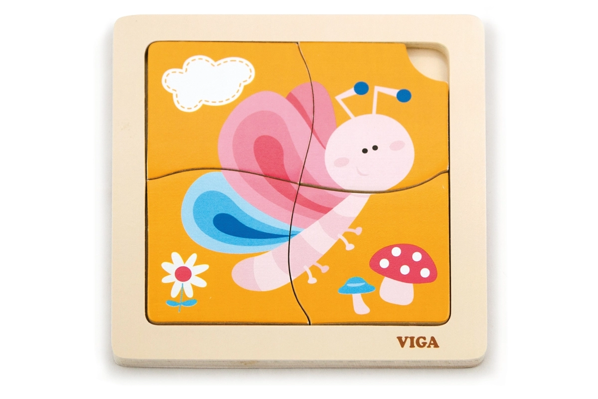 Tato roztomilá dřevěná skládačka s barevným motýlem je skvělou volbou pro první seznamování s puzzle. Čtyři robustní dílky se snadno drží v dětských ručkách a skládají se do pevného dřevěného podnosu s předlohou. Jeden dílek má praktický otvor pro snadné vyjímání, takže se děti rychle naučí dílky manipulovat a znovu je skládat.