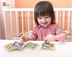 Díky jasným barvám a přehlednému motivu puzzle podporuje rozpoznávání barev a tvarů, rozvíjí trpělivost a přirozenou radost z objevování. Kompaktní rozměr cca 12 × 12 cm se hodí na doma i na cesty a dřevěné provedení zajišťuje dlouhou životnost.
