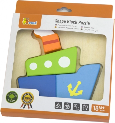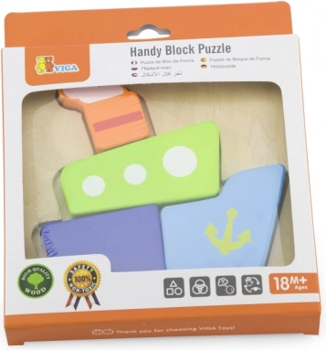 Viga dřevěné mini puzzle loď pro nejmenší. 4 dílky, bezpečné netoxické barvy, hladké hrany. Rozvíjí motoriku a logiku. Ideální do školky i domů.