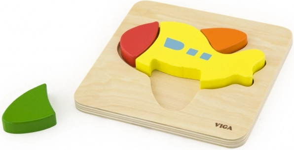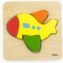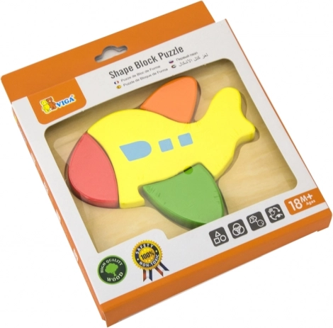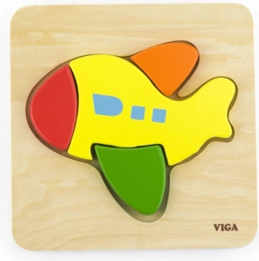 Dřevěné puzzle Viga Letadlo jsou ideální volbou pro první skládání doma i v mateřské škole. Díky čtyřem barevným, robustním dílkům si děti rychle osvojí princip přiřazování tvarů do příslušných prohlubní. Kvalitní zpracování, hladké hrany a netoxické barvy zaručují bezpečnou hru.