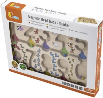 Vstupte do světa učení a zábavy s Magnetickým Bludištěm - Čísla. Tato dřevěná deska vybavená číslicemi a pestrobarevnými korálky nabízí skvělý způsob, jak děti mohou rozvíjet své matematické dovednosti a jemnou motoriku.