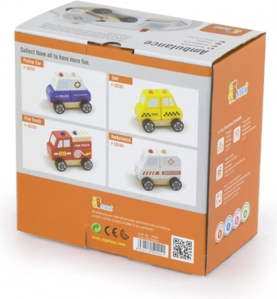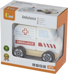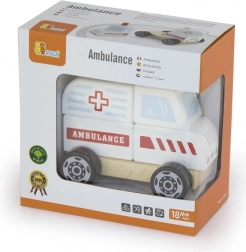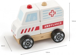 Tato dřevěná sanitka je skvělou kombinací skládačky a pojízdného autíčka. Děti mohou jednotlivé díly sestavit do podoby sanitky a poté si užít jízdu díky hladce se otáčejícím kolečkům. Robustní dřevo, kvalitní barvy a zaoblené hrany zajišťují bezpečné hraní a dlouhou životnost.