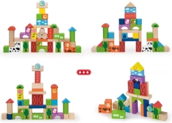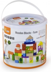 Tato barevná dřevěná stavebnice s farmářským motivem nabízí 50 kvalitních dílků pro nekonečné hodiny zábavy. Děti mohou stavět domečky, ohrady či jednoduchá vozidla a rozvíjet tak prostorovou představivost, koordinaci oko–ruka a trpělivost. Díky přiložené brožuře s návody ve 3 obtížnostech si na své přijdou začátečníci i pokročilí stavitelé.