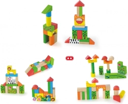 Různé tvary a barvy inspirují k volné stavbě i učení se tvarům a barvám. Zvířecí potisky dělají každé hraní zábavnějším.