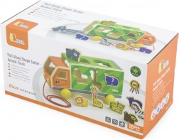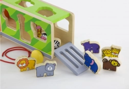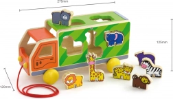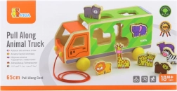 Dřevěný tahací kamion se zvířátky a vkládačkou