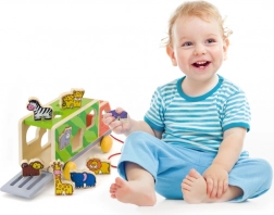 Součástí je 8 pevných dřevěných zvířátek s hladkými hranami. Podporují poznávání tvarů, barev a rozvíjejí představivost při volné hře.