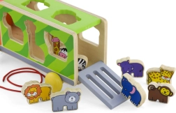 Tento barevný dřevěný kamion spojuje tahačku a vkládačku 2v1. Děti vozí kamion na provázku a zároveň vkládají zvířátka do odpovídajících otvorů, čímž trénují trpělivost, logiku a obratnost prstíků. Hladce opracované hrany a odolné provedení jsou jako stvořené pro každodenní hraní.
