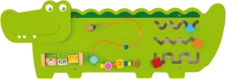 Objevte zábavnou a vzdělávací hračku, která šetří místo – nástěnná tabule krokodýl kombinuje několik aktivit do jednoho kompaktního celku. Děti mohou posouvat tvary v 3 labyrintech, cvičit prsty na drátěné pletací dráze s korálky a skládat obrázky z otočných kostek-puzzle. Barevné provedení a sympatický design okamžitě lákají ke hře.
