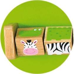 Tři hranoly s ilustracemi zvířat děti otáčejí a skládají do správného obrázku – trénují logiku, trpělivost a vizuální vnímání.