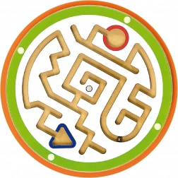 Labyrint s kuličkou a šroubky na závitu trénují přesnost prstů, úchop a koordinaci oko–ruka. Děti posouvají kuličku a procvičují trpělivost a soustředění.