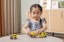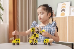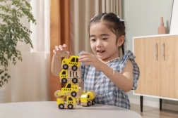 Každé vozidlo má funkční kolečka pro plynulé kutálení a některé díly naznačují pohyblivé prvky (např. lžíce, míchačka či jeřáb), což podněcuje přirozenou zvídavost a rozvoj koordinace oko–ruka.