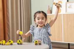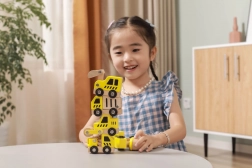 Tato kvalitní sada obsahuje 6 různých stavebních vozidel v jasné žluté barvě s přírodními dřevěnými prvky – ideální pro první závody po podlaze i hraní na staveniště. Díky zaobleným tvarům a odolné dřevěné konstrukci jsou autíčka bezpečná a příjemná na dotek.