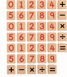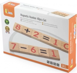 Magnetická dřevěná čísla představují ideální pomůcku pro učení základních aritmetických dovedností dětí od 3 let. Sada obsahuje 40 kusů magnetů s čísly a symboly, které umožňují snadné skladování v praktickém textilním pytlíku.