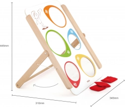 Dřevěná hra na házení na cíl od Viga nabízí zábavu i vzdělávací přínos. Je ideální jak pro domácí použití, tak pro venkovní aktivity. Celá hra je vyrobena z lakovaného dřeva a malována netoxickými barvami, což zaručuje dlouhotrvající radost ze hry bez zdravotních rizik. Skvěle rozvíjí dětské schopnosti a poskytuje zdokonalení motorické koordinace a koncentrace.