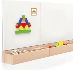 Geometrické bloky poskytují mnoho zábavy. Děti mohou kopírovat vzory z přiložených karet nebo vytvářet své vlastní kombinace. Bloky lze připevnit na magnetickou tabuli nebo si s nimi hrát na stole. Tento produkt je navržen pro edukativní hru, která podněcuje jemnou motoriku a prostorové vnímání.