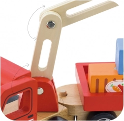Barevný design jeřábu s kontejnery potěší oko a láká k hravé činnosti. Odnímatelný přívěs zajišťuje variabilitu při hře, což podporuje kreativitu dětí.