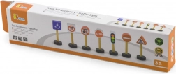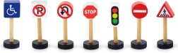 Sada sedmi dřevěných dopravních značek poskytuje dětem základní znalosti o pravidlech na silničním provozu.