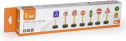 Tato paměťová a vzdělávací hra obsahuje 7 různých dřevěných dopravních značek, které pomohou dětem osvojit si základní pravidla silničního provozu. Hračka je ideální pro děti od 3 let a dokonale doplní každou stavebnici či železniční dráhu.