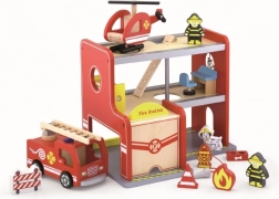 Tato detailně zpracovaná dřevěná hasičská stanice nabízí dětem autentické prostředí pro záchranné mise. Díky červené stanici s více úrovněmi, autu s žebříkem a přistávací plochou pro helikoptéru si děti snadno vytvoří vlastní příběhy a procvičí koordinaci i logické myšlení.