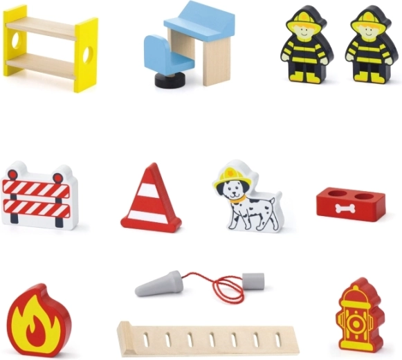 V balení najdete vše pro okamžité hraní: budovu stanice, 2 hasiče, vrtulník, hasičské auto, hydrant, palandu, židli, ovládací panel a žebřík. Materiály a barvy jsou bezpečné a netoxické, aby si děti mohly hrát bez starostí. Ideální jako dárek, který potěší a zároveň vydrží.