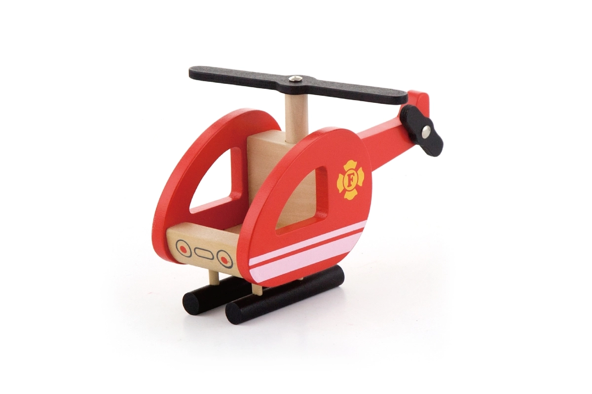 Kompaktní dřevěný vrtulník s otáčivým rotorem a stabilními lyžinami doplní každou záchrannou misi z výšky.
