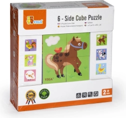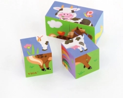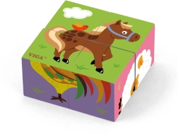 Dětská dřevěná skládačka VIGA Farma přináší chytlavou hru s kostkami, ze kterých děti poskládají veselé obrázky zvířátek ze statku. Každá strana kostky tvoří jiný obrázek, takže z pouhých 4 kostek vznikne až 6 různých ilustrací. Hra je skvělá pro první logické úkoly a učení formou hry.