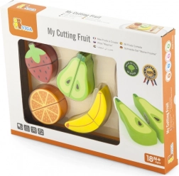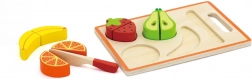 Tato kvalitní dřevěná sada nabízí bezpečnou hru na vaření: jednotlivé kousky ovoce jsou spojeny suchým zipem, díky čemuž je mohou děti opakovaně „krájet“ a znovu spojovat. Díky realistickému provedení se děti učí poznávat tvary a barvy, procvičují úchop a koordinaci a rozvíjejí fantazii při hraní na kuchaře.